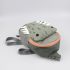 🦷 Buzunar‑bot 3D frontal, cu dinți pufoși albi și imprimeuri verde‑închis.