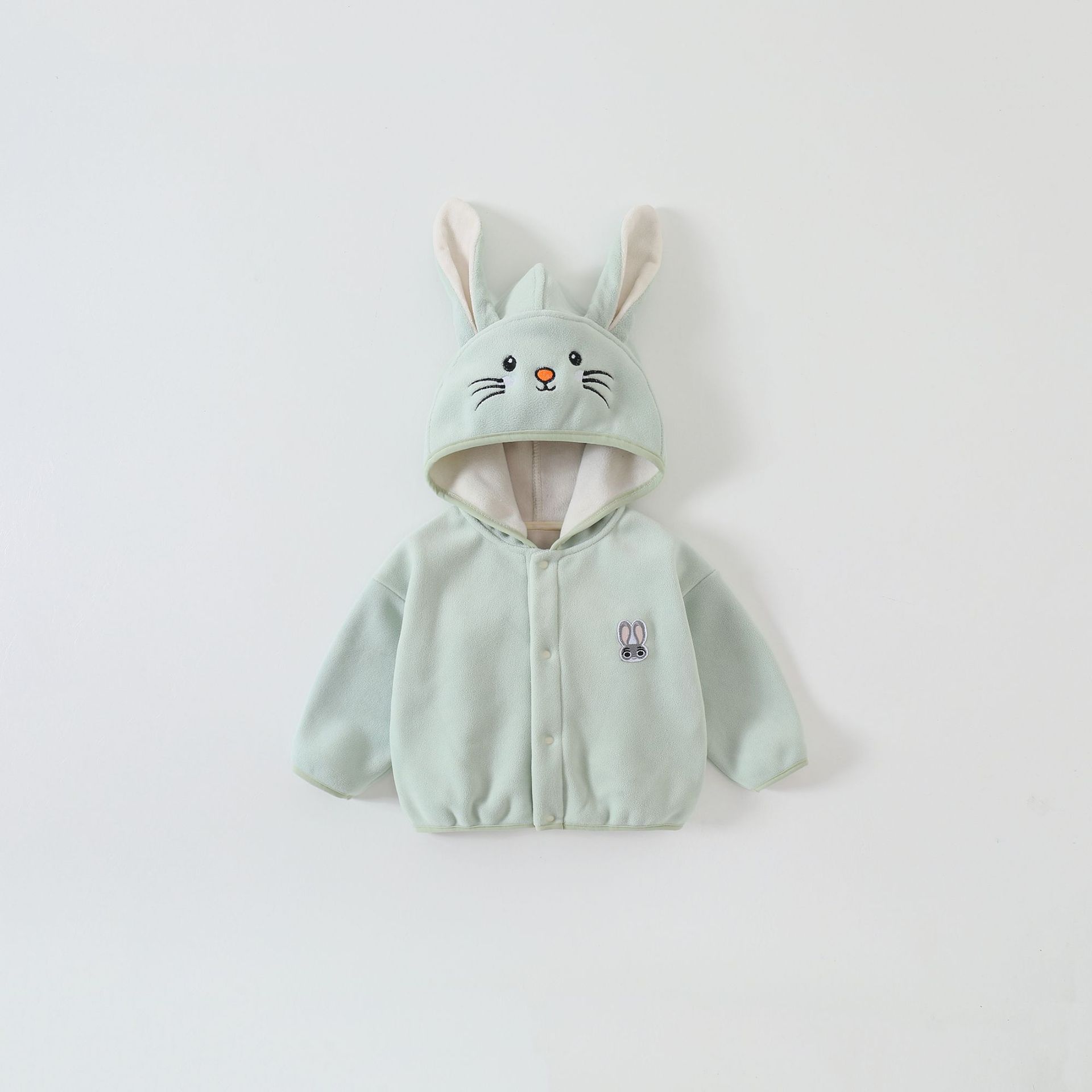 Hanorac din fleece cu glugă, urechiușe 3D și broderii Sugar Bunny Mint