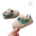 👟 Tonurile deschise sunt completate de linii decorative verzi și șireturi contrastante.