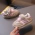 👟 Tonurile deschise de bază sunt completate de linii și șireturi decorative roz, în contrast atrăgător.