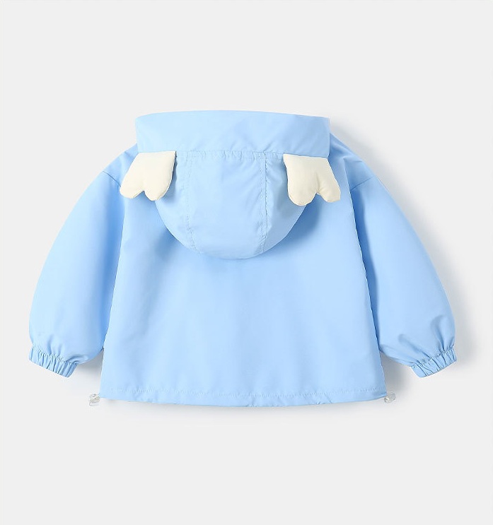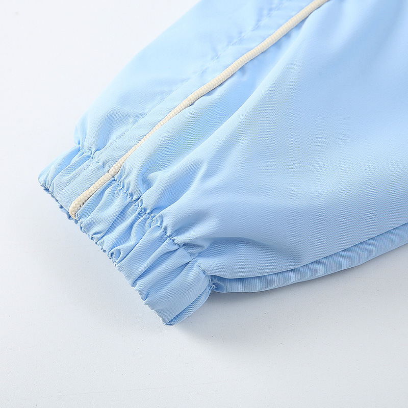 😊 Material tip windbreaker, rezistent la apă și vânt, în nuanțe pastel de albastru și alb.