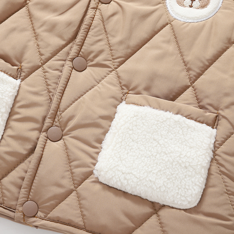Jachetă matlasată cu închidere cu capse și aplicație Toffee Bear