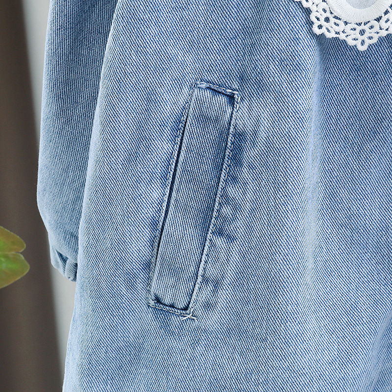 Jachetă/parkă din denim cu guler extravagant, dantelă și elemente 3D Sweet Meadow