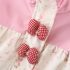 🩷 Închidere cu fermoar pe toată lungimea + suprapunere cu capse și fundițe decorative 3D în carouri roșu-alb.