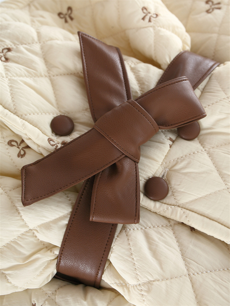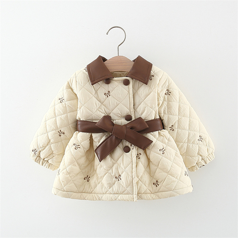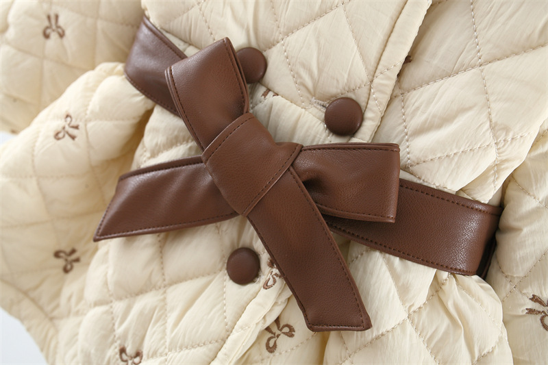 Palton cu guler clasic, curea din piele și detalii matlasate Beige Pretty