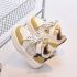 🎨 Combinație de alb, muștar și verde măsliniu, completată cu o aplicație decorativă în formă de mănușă pentru un aer jucăuș.