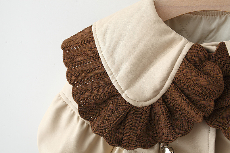 🤎 Design rafinat cu guler evidențiat și dantelă tricotată aplicată.