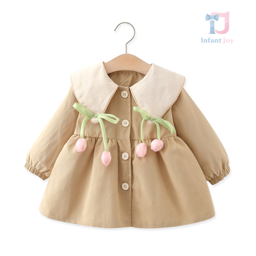 🌷 Ideală pentru plimbări de primăvară, evenimente speciale sau pentru micile prințese care iubesc hainele frumoase și elegante.