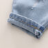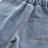 -Pantaloni din denim moale, cu buzunare și talie elastică. Design modern cu croială dreaptă și zone uzate pe craci + aplicație.