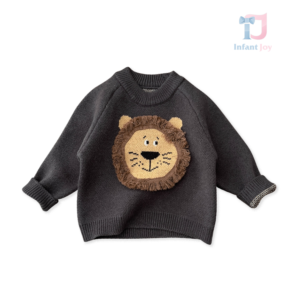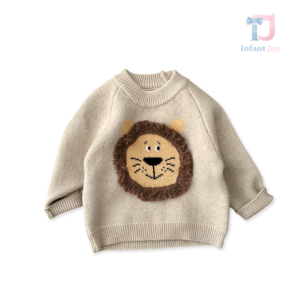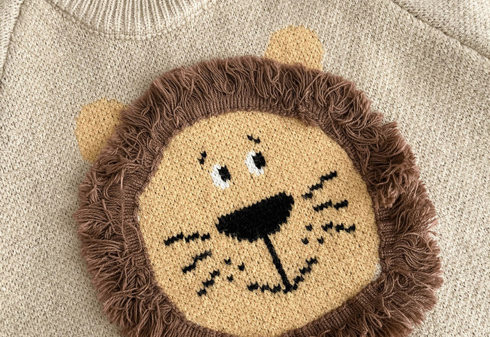 • Pulover tricotat premium cu aplicații țesute și elemente 3D Lion Beige