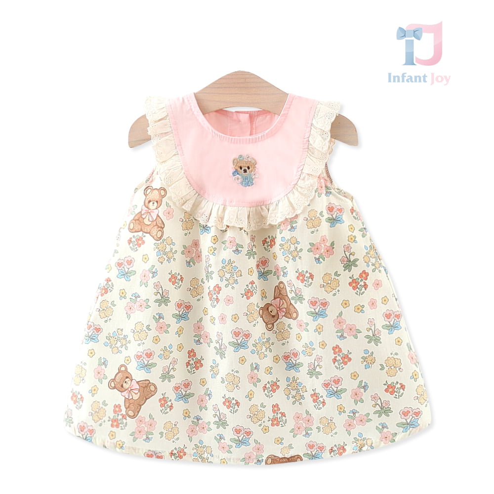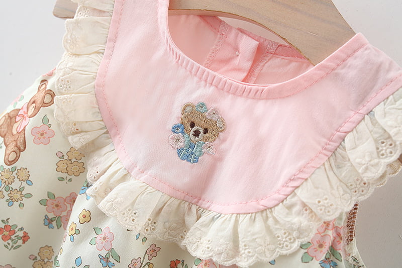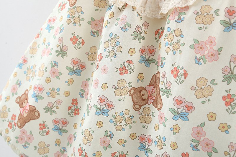 🧸 Imprimeu floral combinat cu ursuleți pentru un look adorabil.