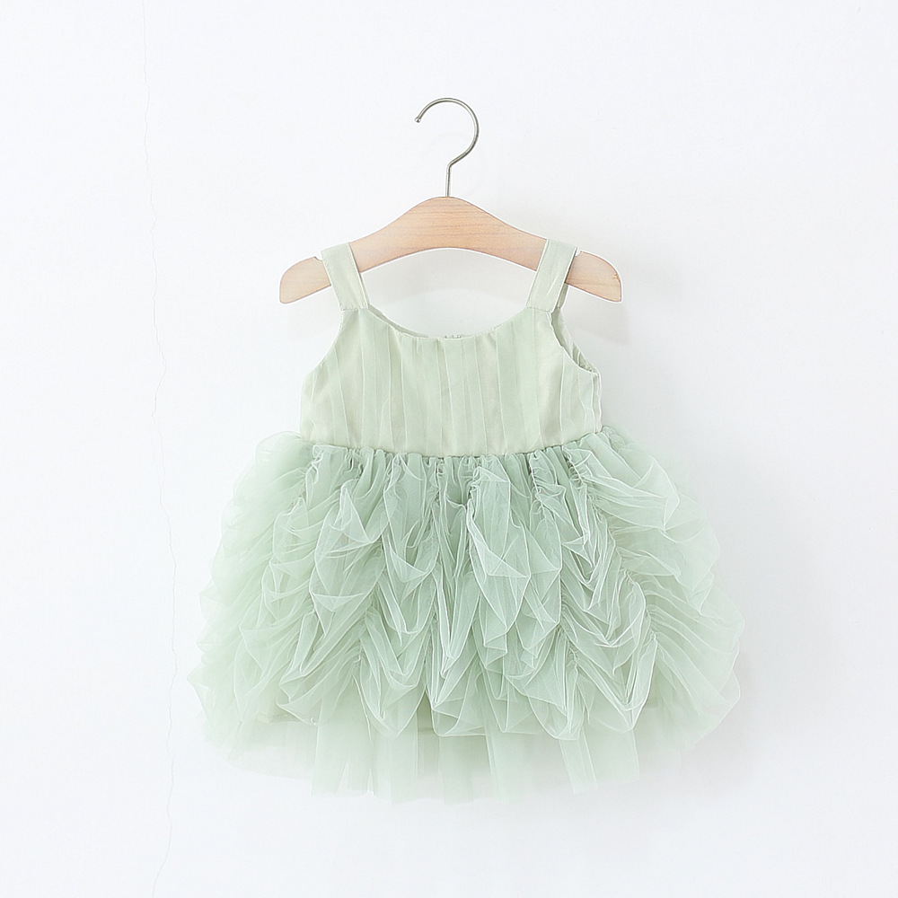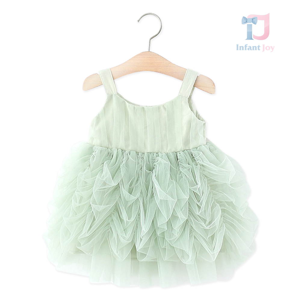👧Model cu bretele late și spate ușor decupat, talia trecând într-un tutu bogat, plisat manual.