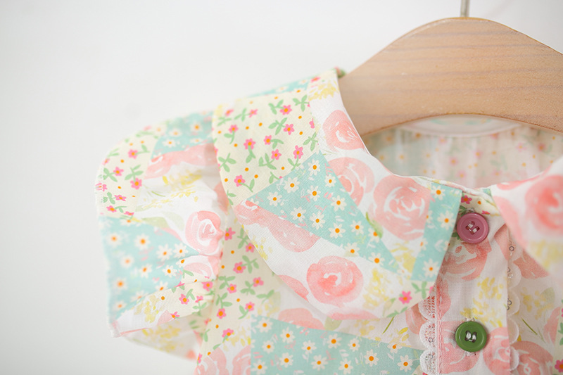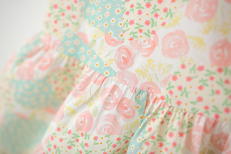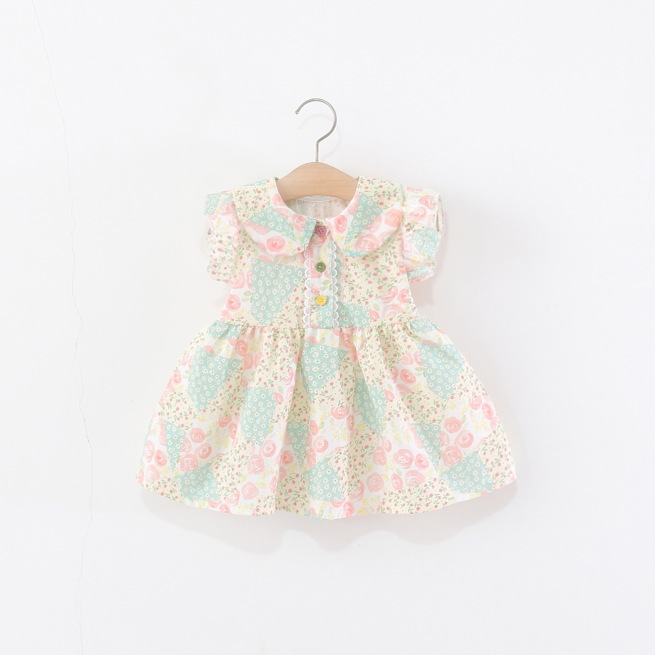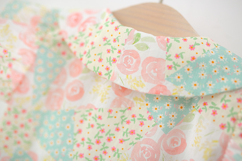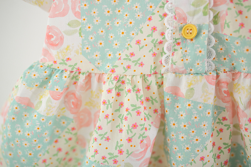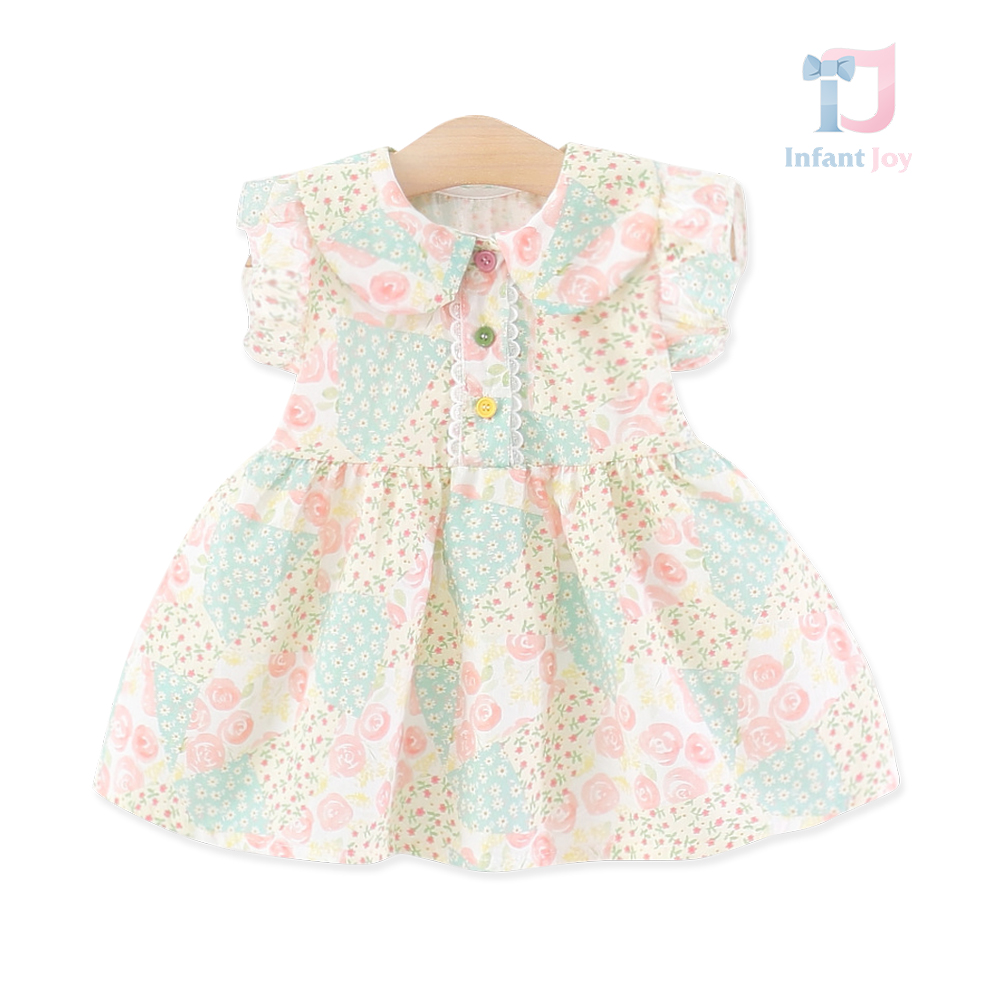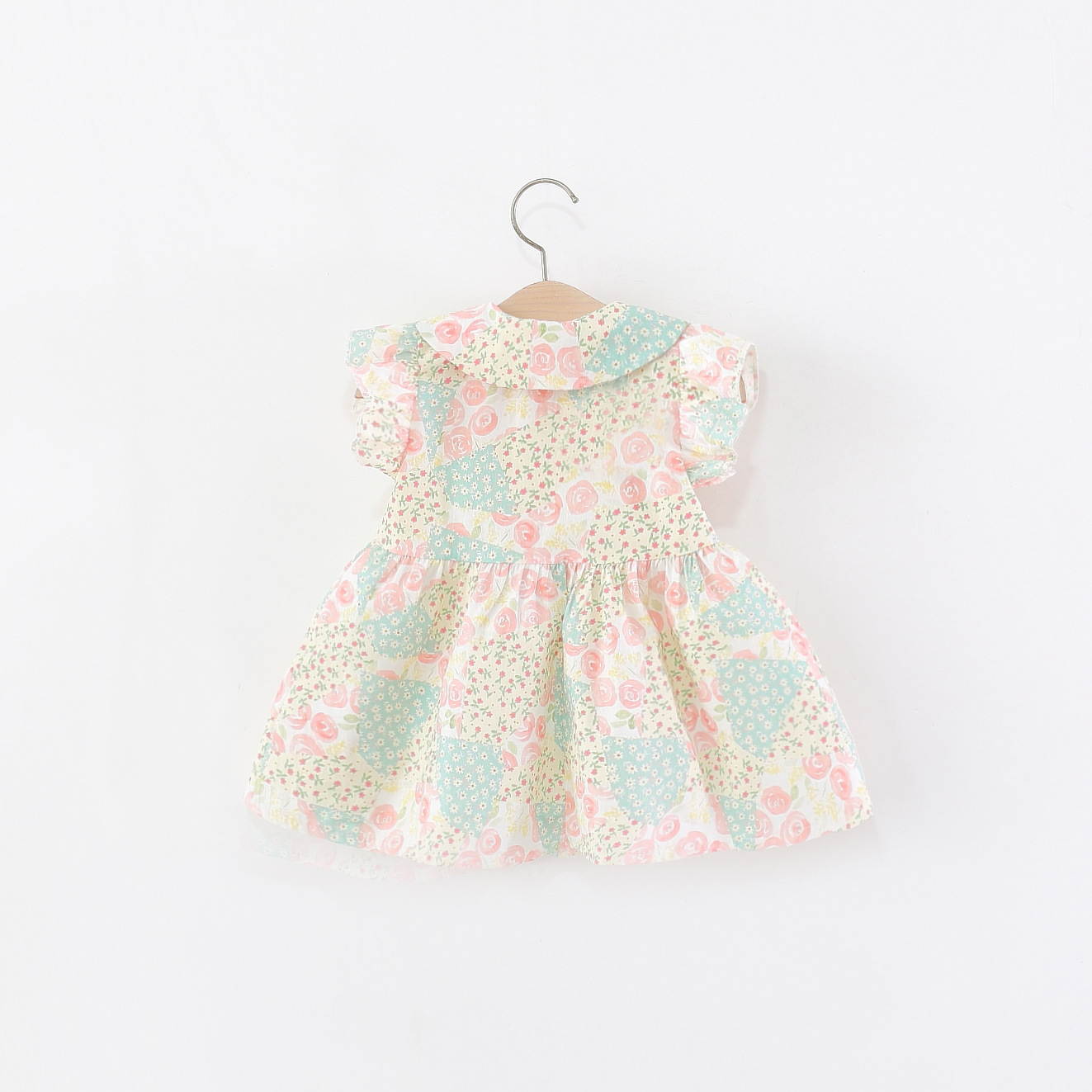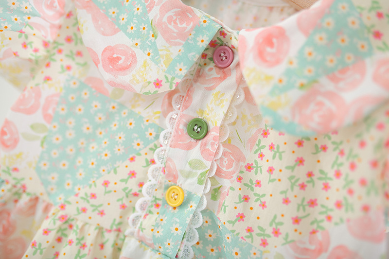 Rochie cu guler Peter Pan și nasturi colorați Pastel Flowers