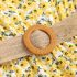 😊 Model cu bretele subțiri ce conturează delicat umerii, și talie accentuată de o curelușă detașabilă în nuanță naturală, îmbrăcată în textură tip ratan, evidențiată cu o cataramă rotundă de efect – pentru reglaj ușor și un accent vintage rafinat.