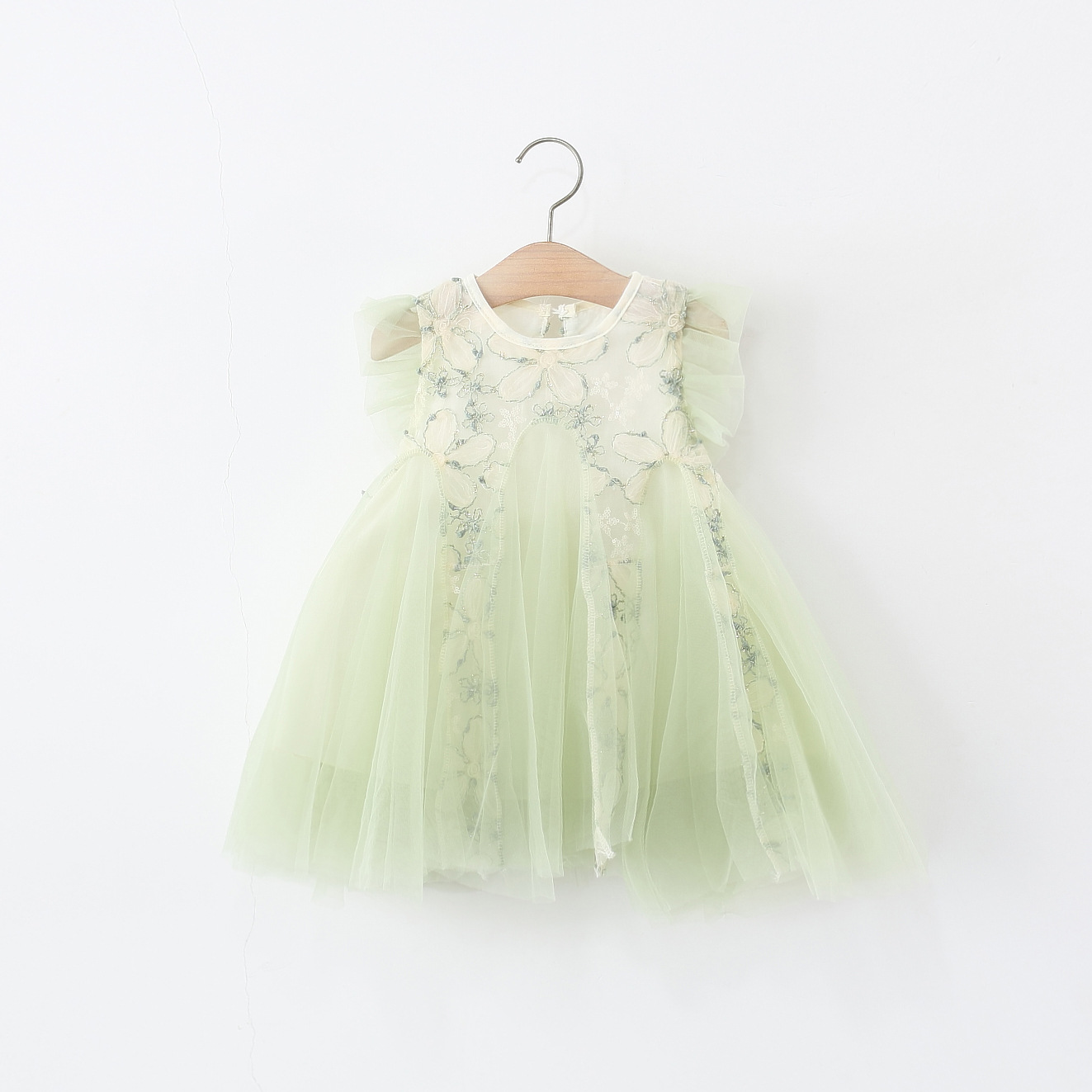 🌸Realizată din tul și dantelă de calitate superioară, în nuanță pastel verde – o alegere stilată și proaspătă.