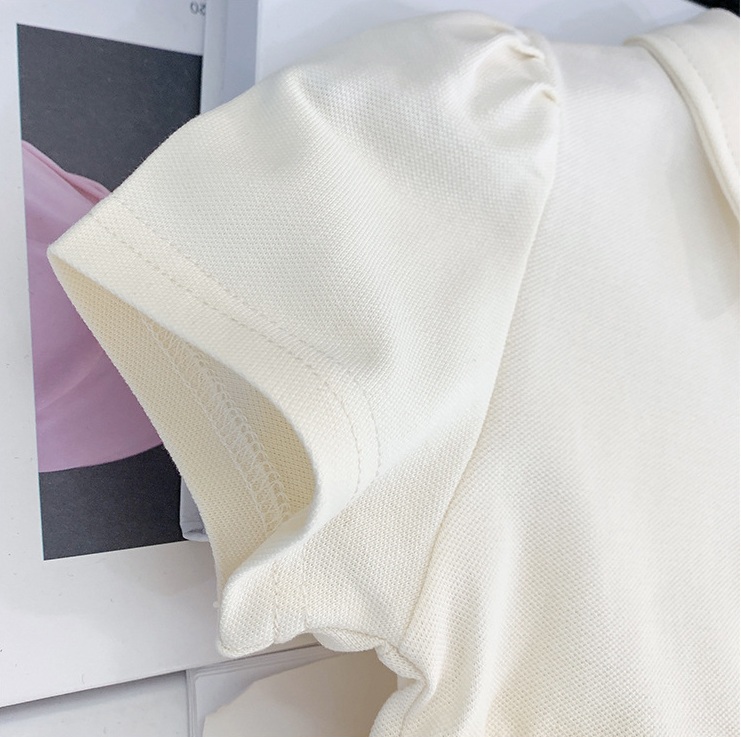 🌹Rochie cu mânecă scurtă, într-o nuanță delicată de crem, confecționată dintr-un material fin și plăcut la atingere.