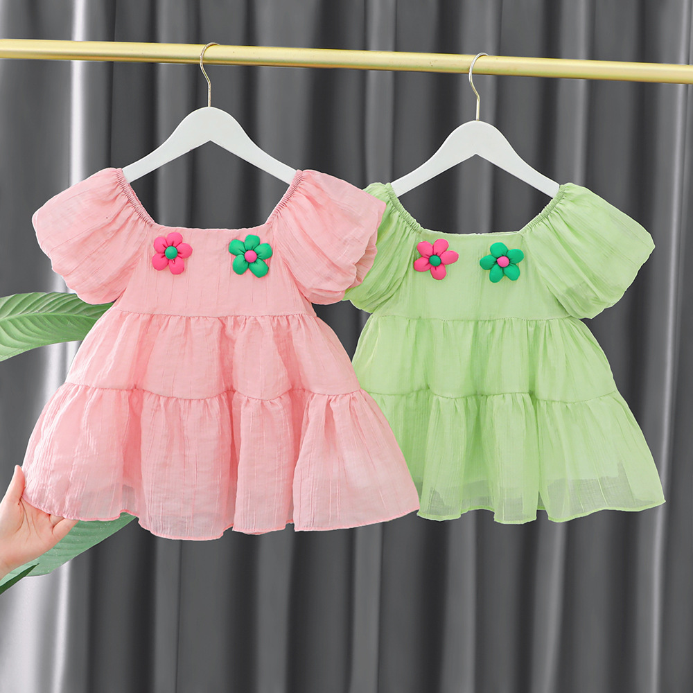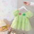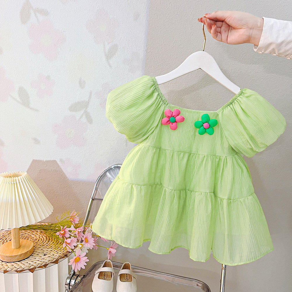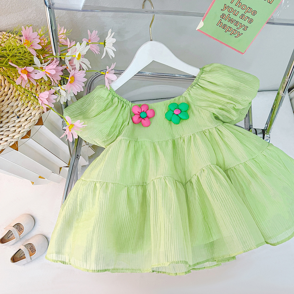 Rochie cu maneci bufante si flori 3D Green Mademoiselle