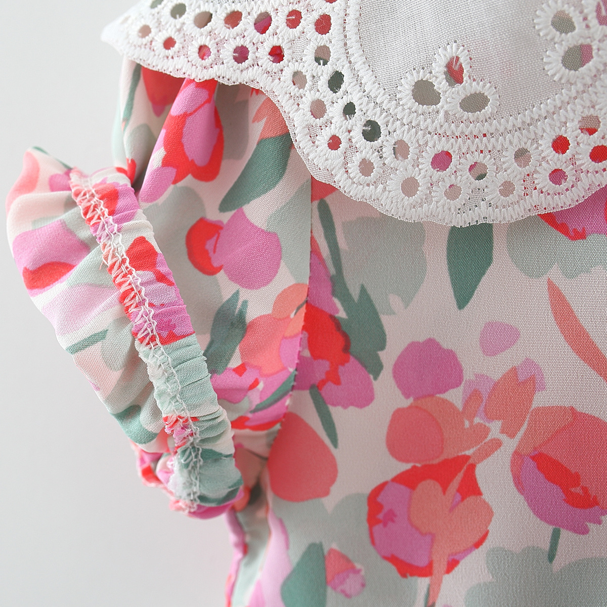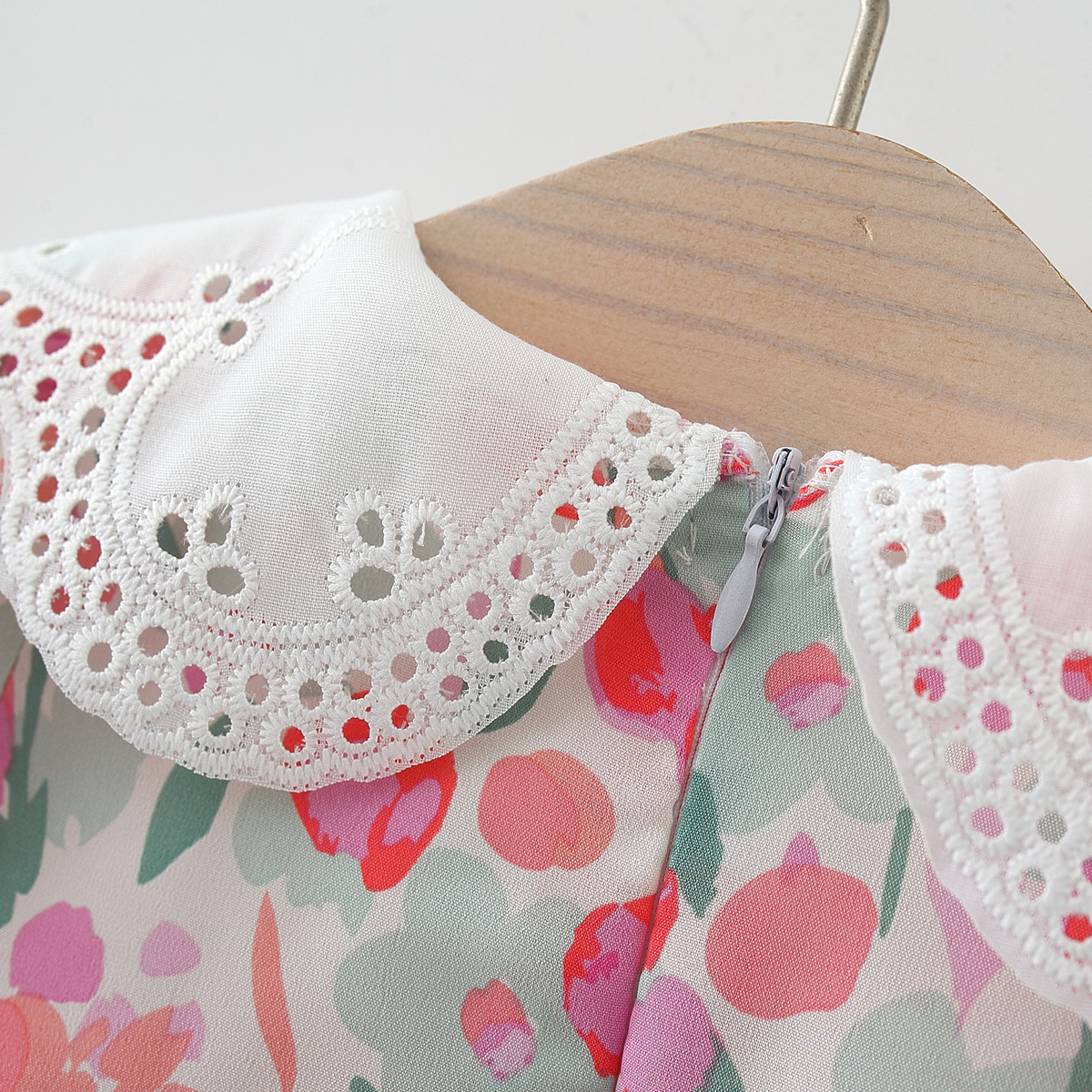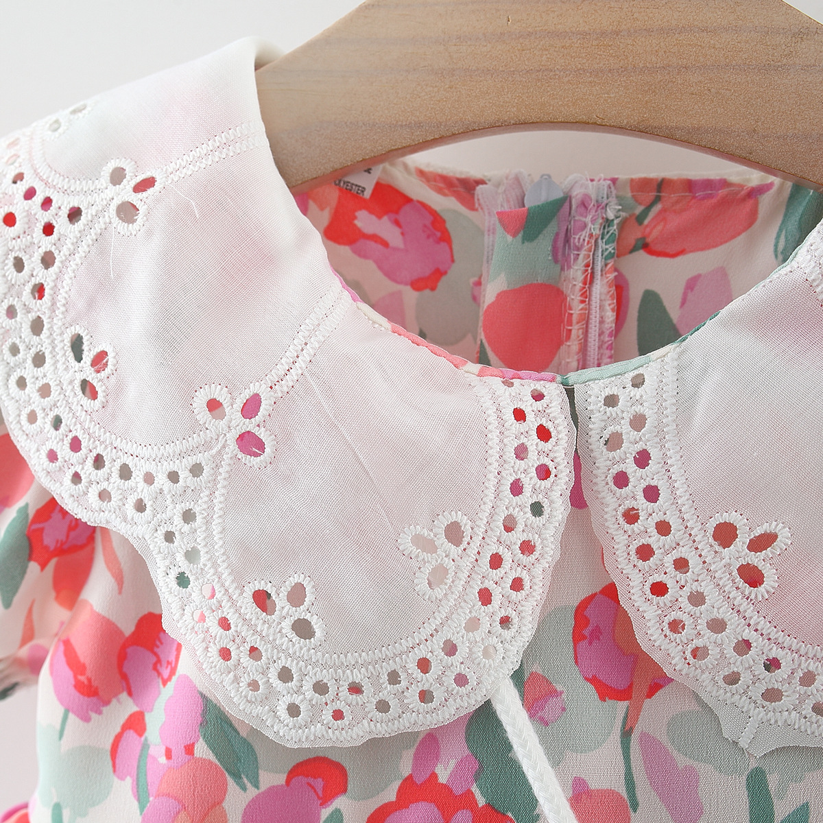 Rochie florală cu guler din dantelă și Pandantiv Hey Flowergirl