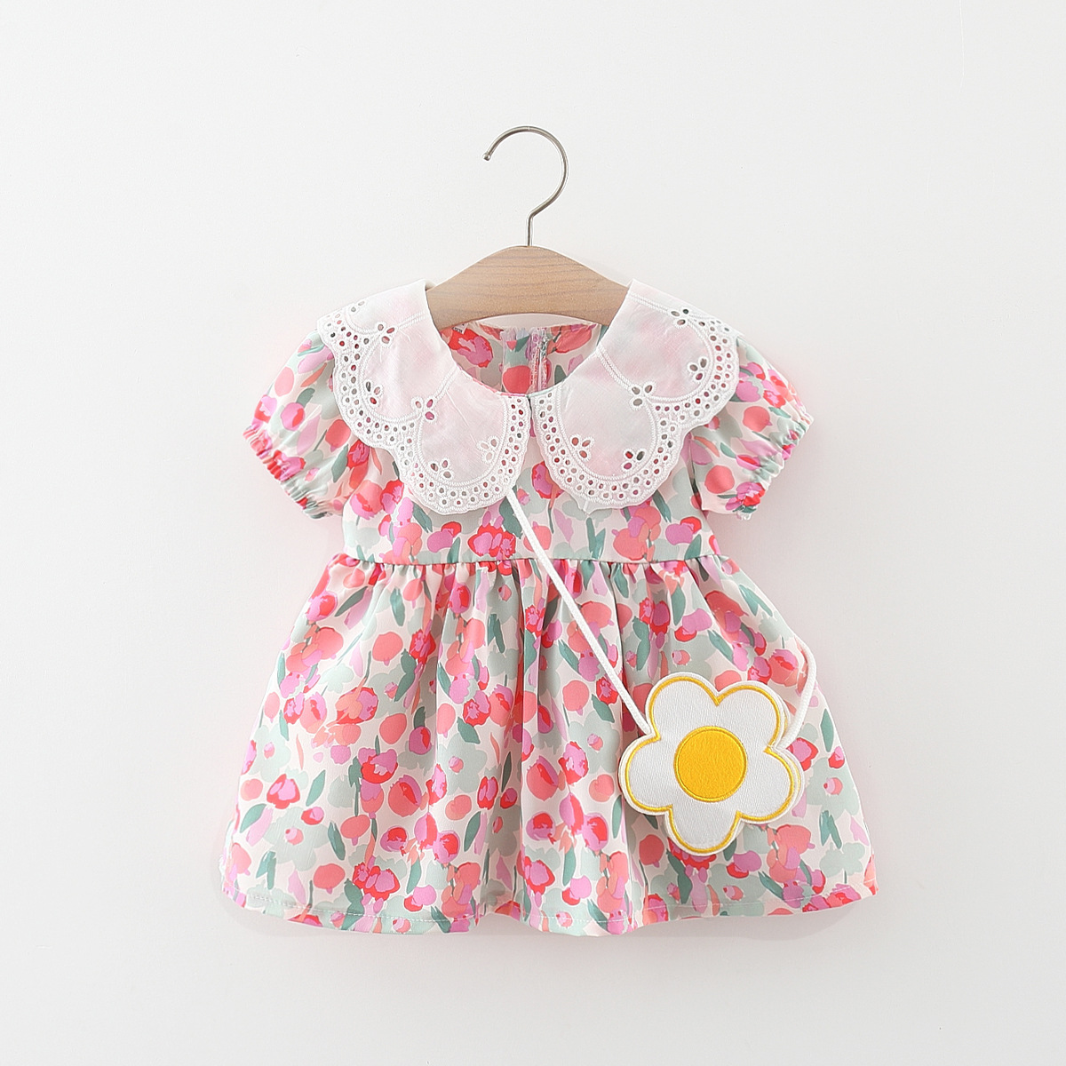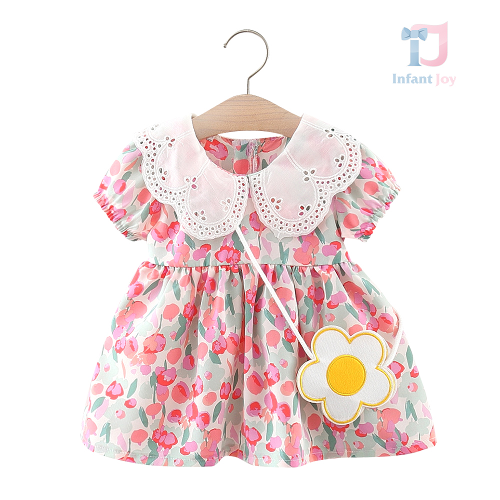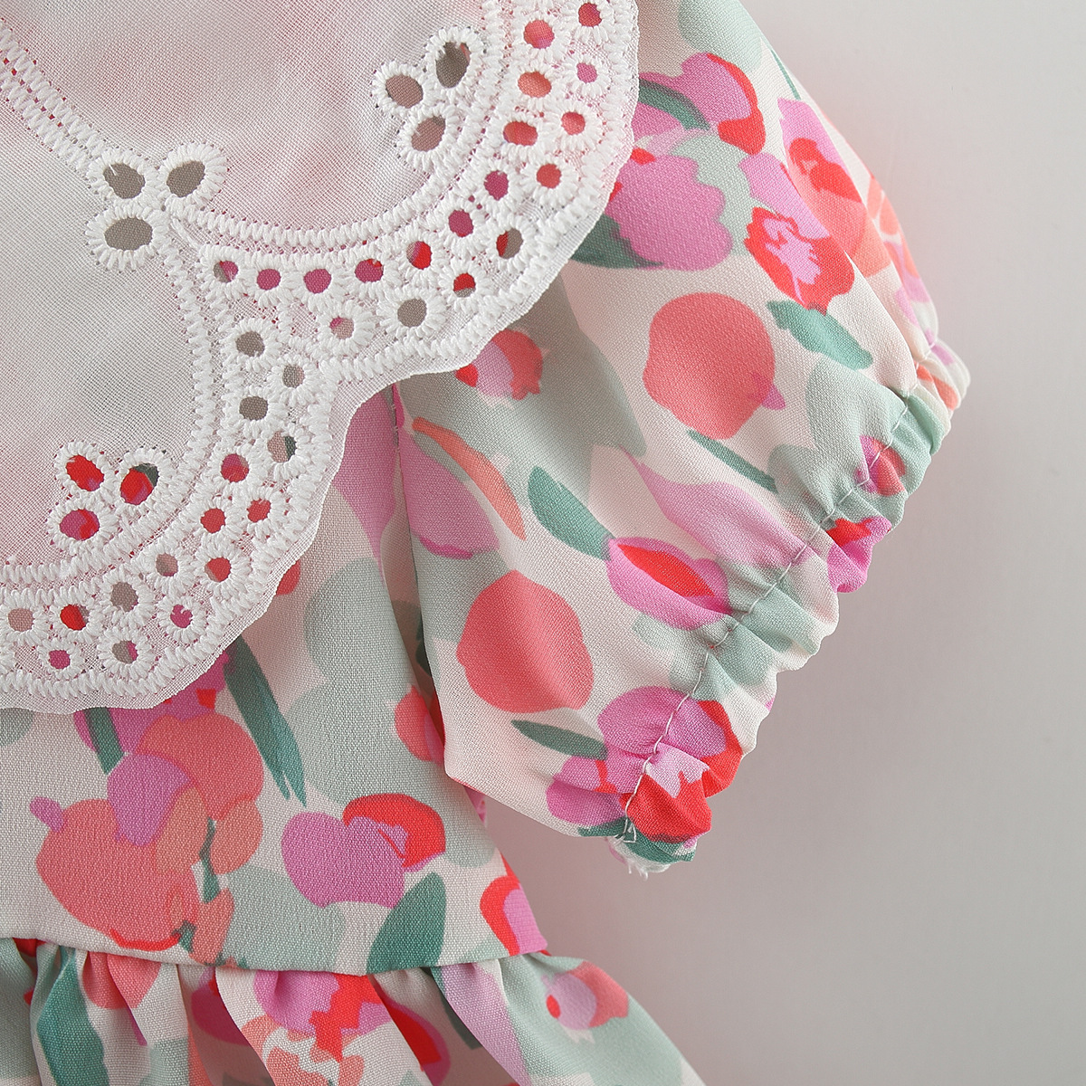Rochie florală cu guler din dantelă și Pandantiv Hey Flowergirl