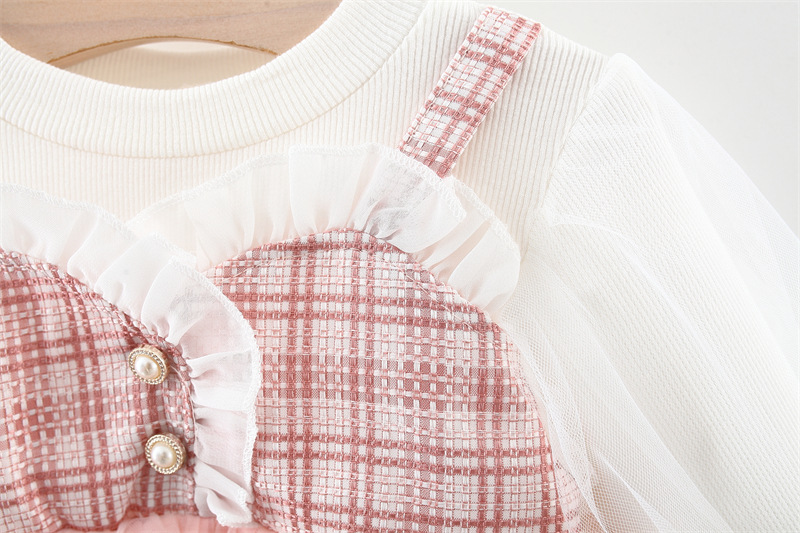 👑Caracteristici: țesătură de înaltă calitate, design modern, bretele de umăr, nasturi perlat, carouri, tul, mâneci spectaculoase