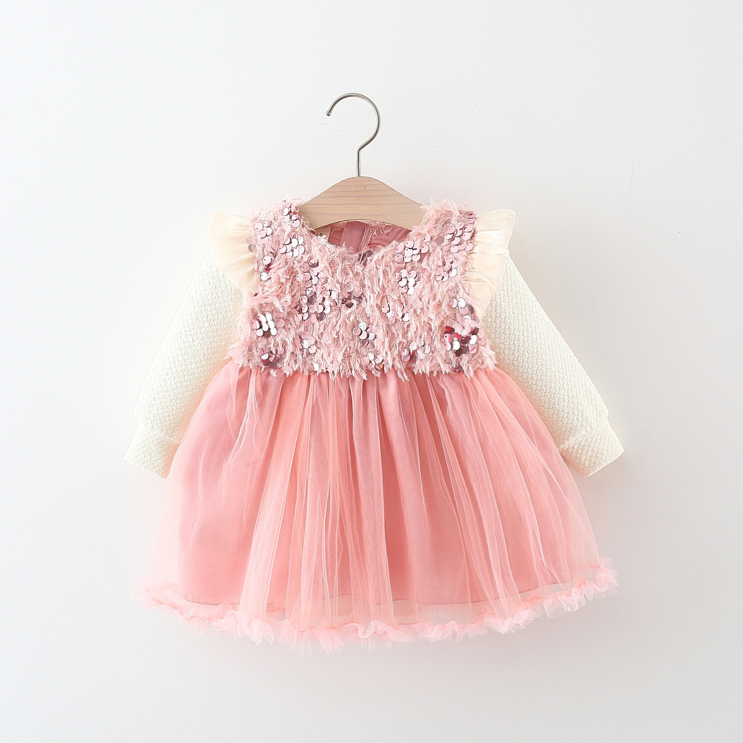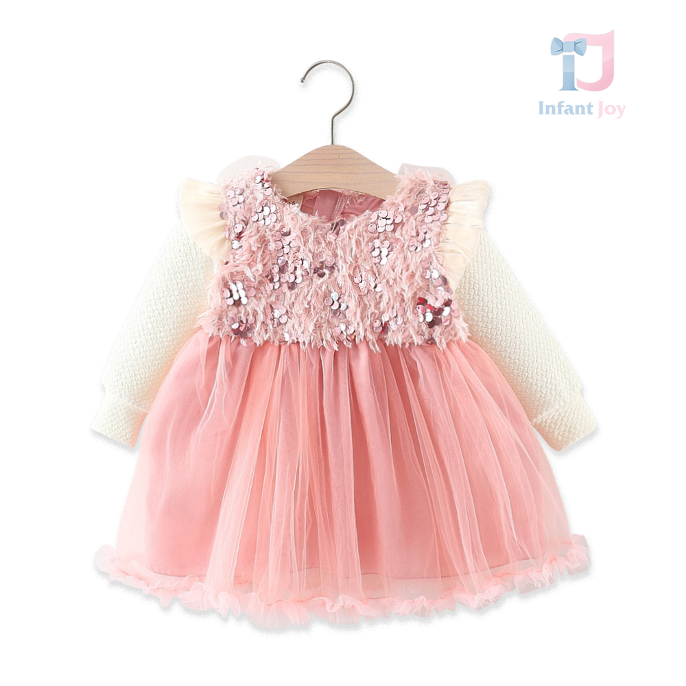 Rochie premium cu pene delicate și paiete Pink Sequin