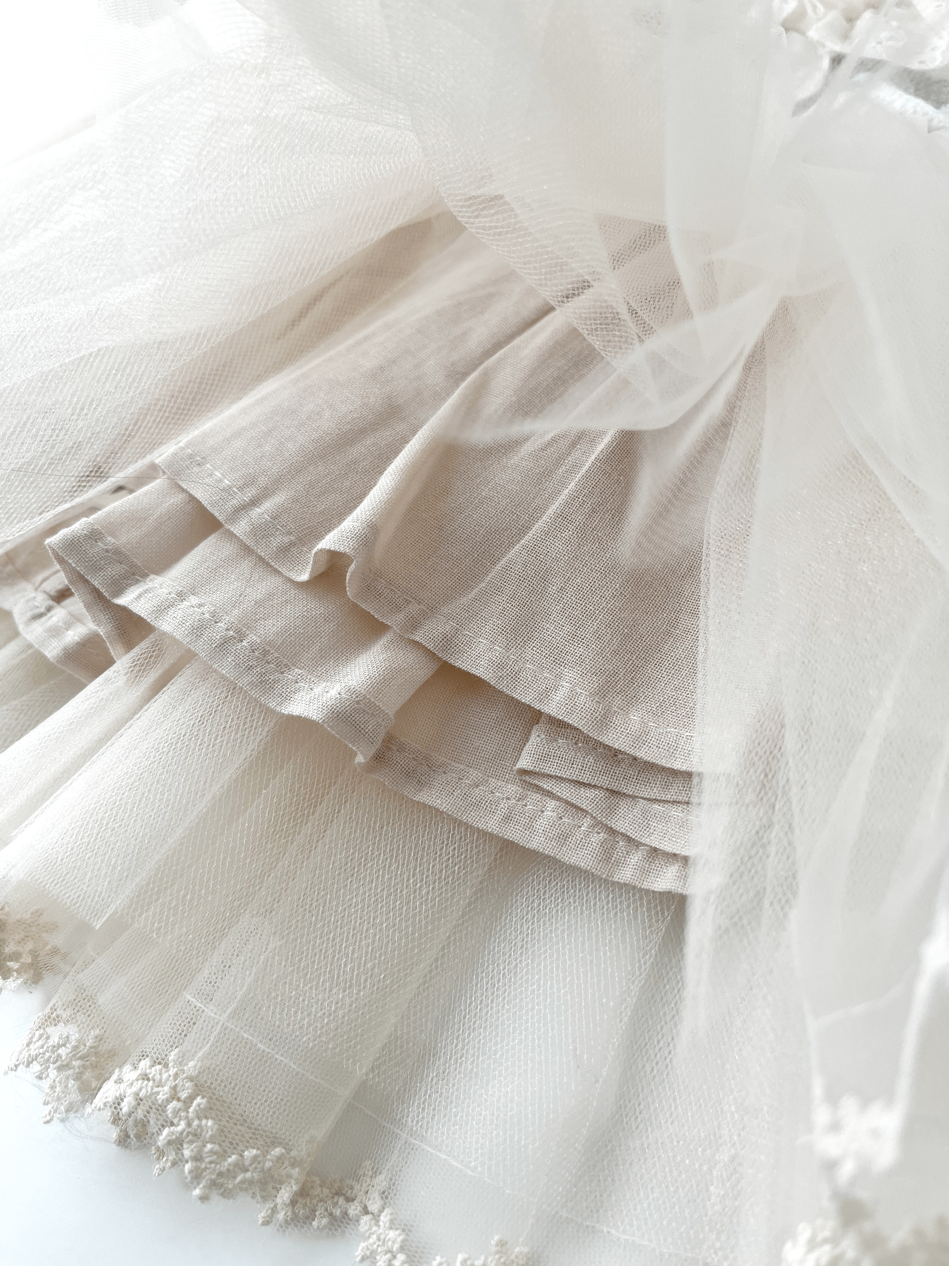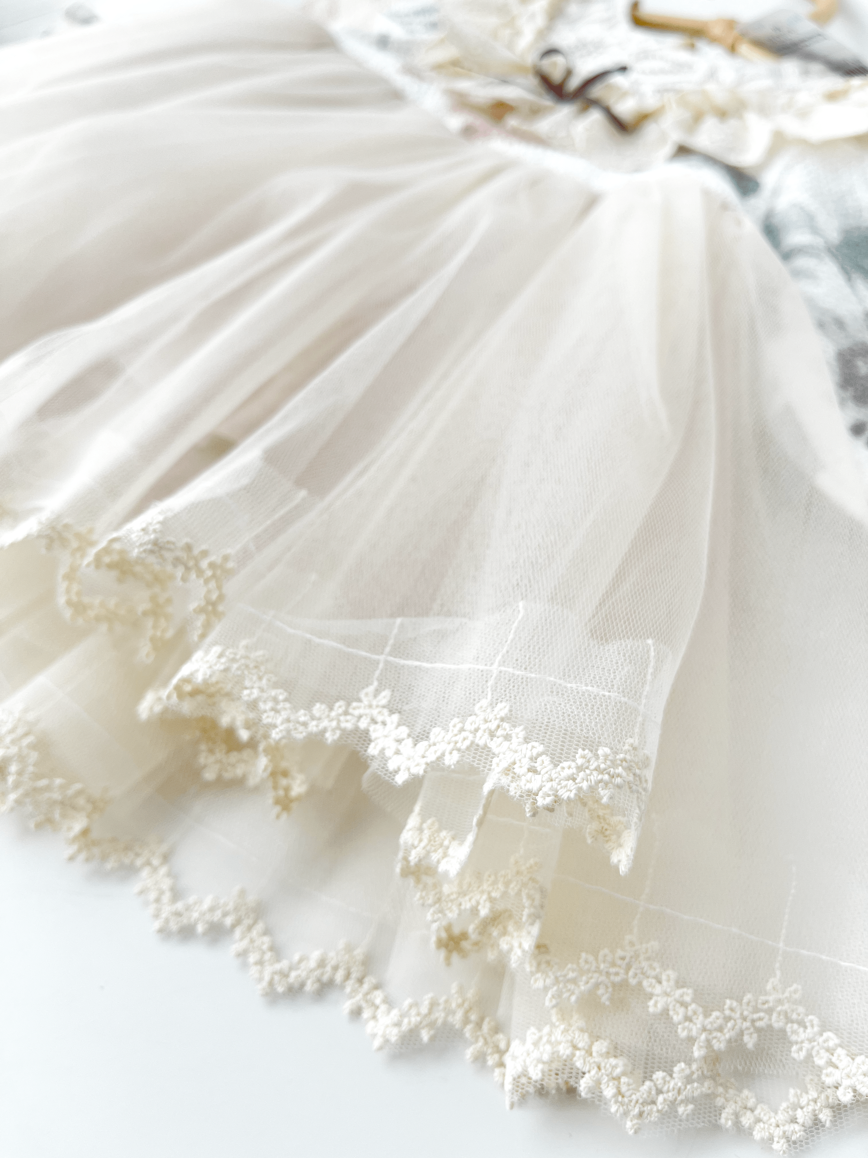 🍦 Partea inferioară a rochiei este realizată din tul fin, cu croială ușor evazată.