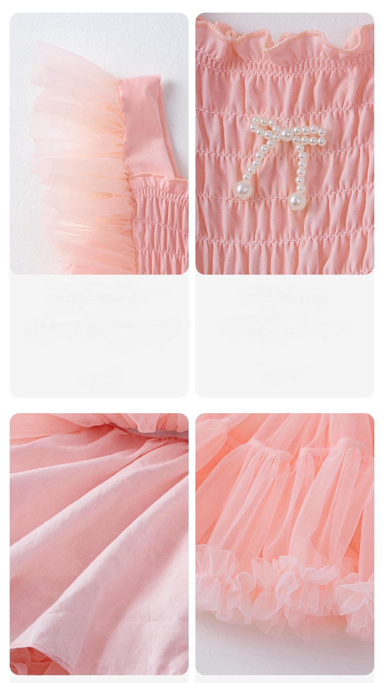 👗 Model fără mâneci, decorat cu volane din tul pe lateralele trunchiului