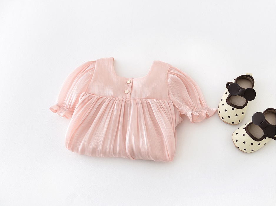🌼 Mâneci tip „bufant” cu elastic la capete + cordon atașat ce poate fi legat în fundă.