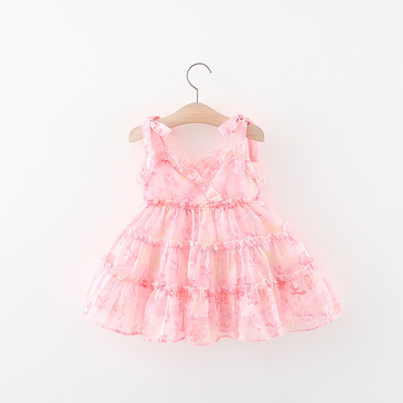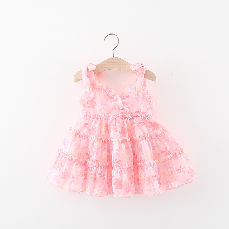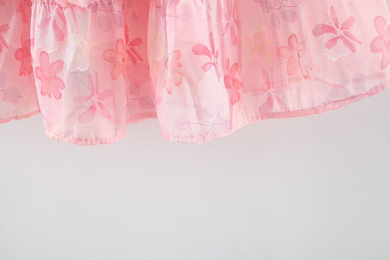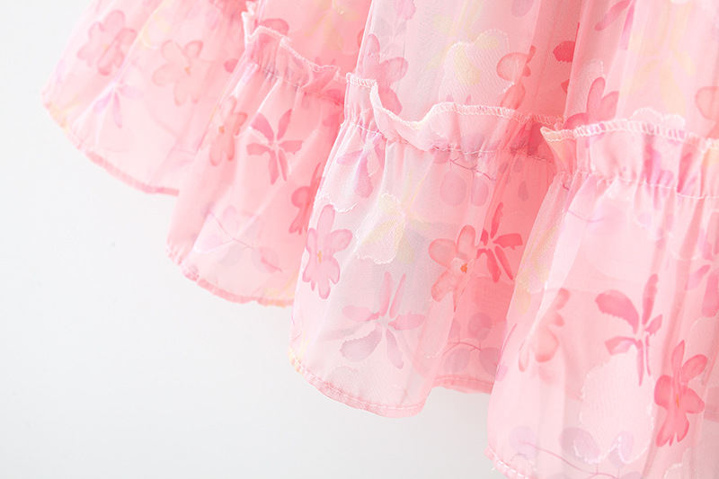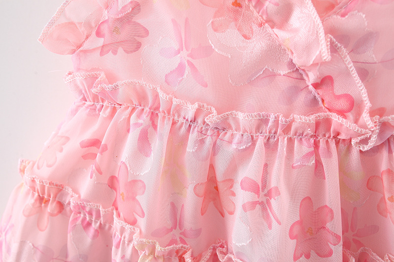 Rochie din sifon cu volane si bustiera asimetrica Pretty Pink