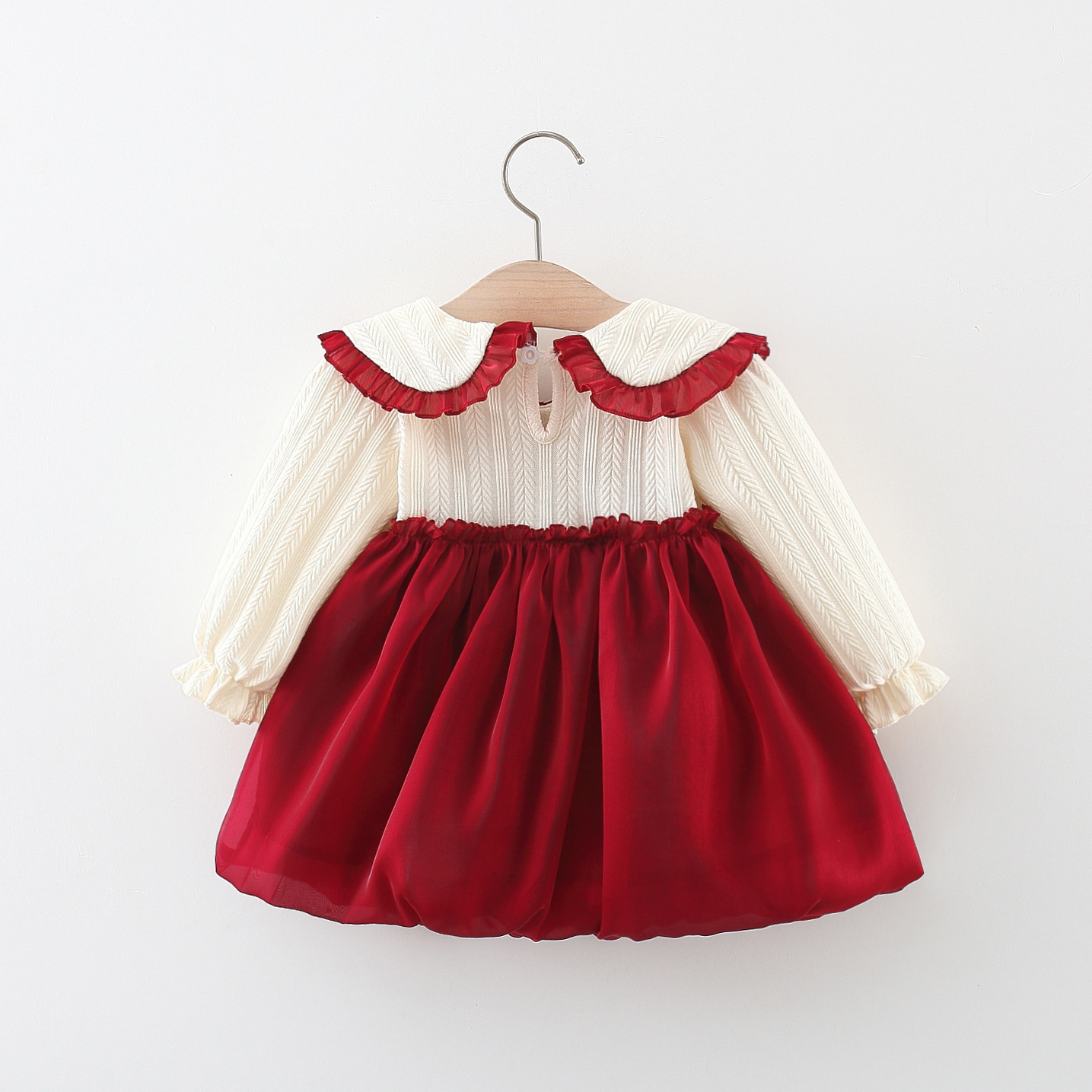 Rochie din crep și organza cu guler și elemente 3D Red Rock Bear