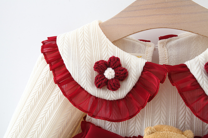 👑Caracteristici: țesătură în relief, elemente 3D, mânecă spectaculoasă, guler, broderie, broșă de pluș, panglică, căptușeală din bumbac, nasture