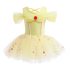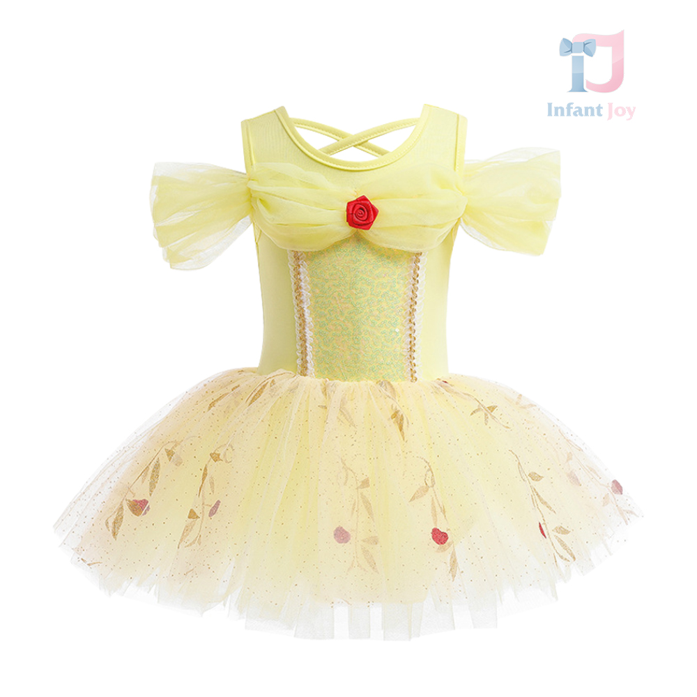 ❤ Inspirată de personajul Belle, rochia are un design elegant în partea superioară, tip corset.
