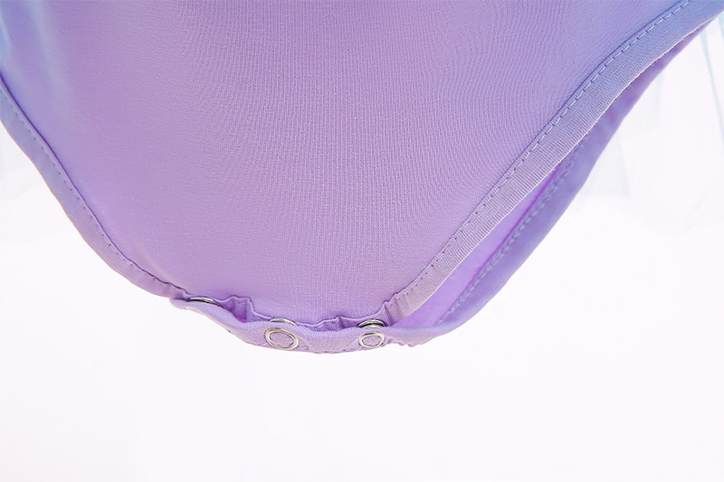 💎 Partea superioară a rochiei este într-o nuanță pastel liliachie, cu o aplicație în formă de scoică pe piept, încadrată de valuri sclipitoare și paiete.