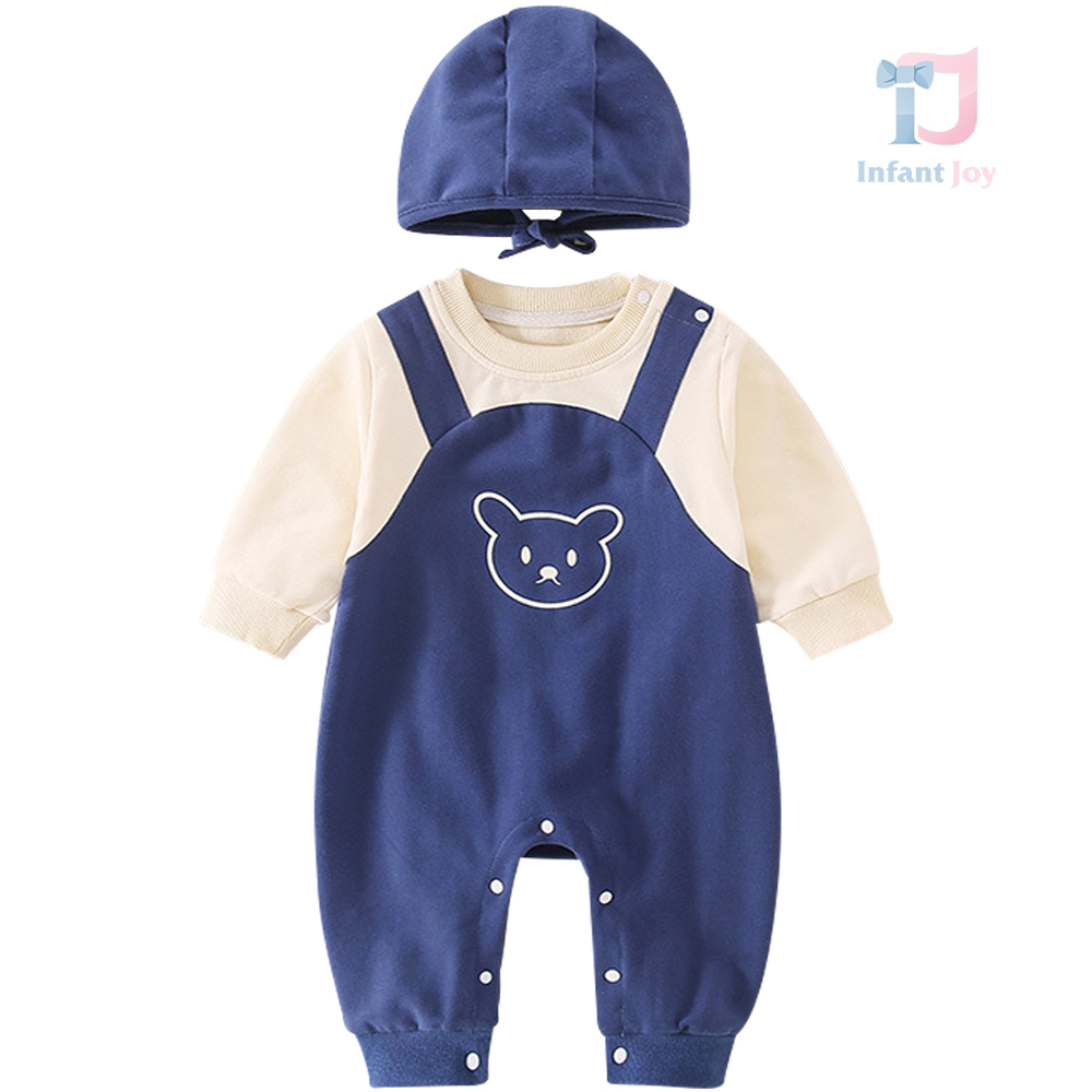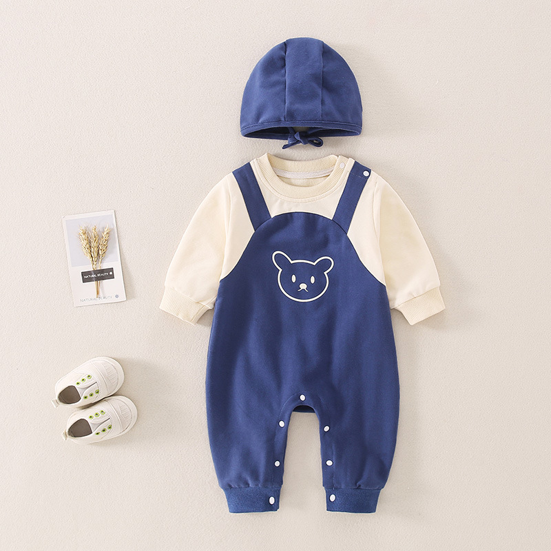 Salopetă cu pălărie Beige & Navi Bear – 2 piese