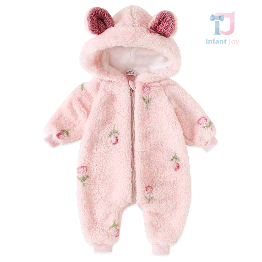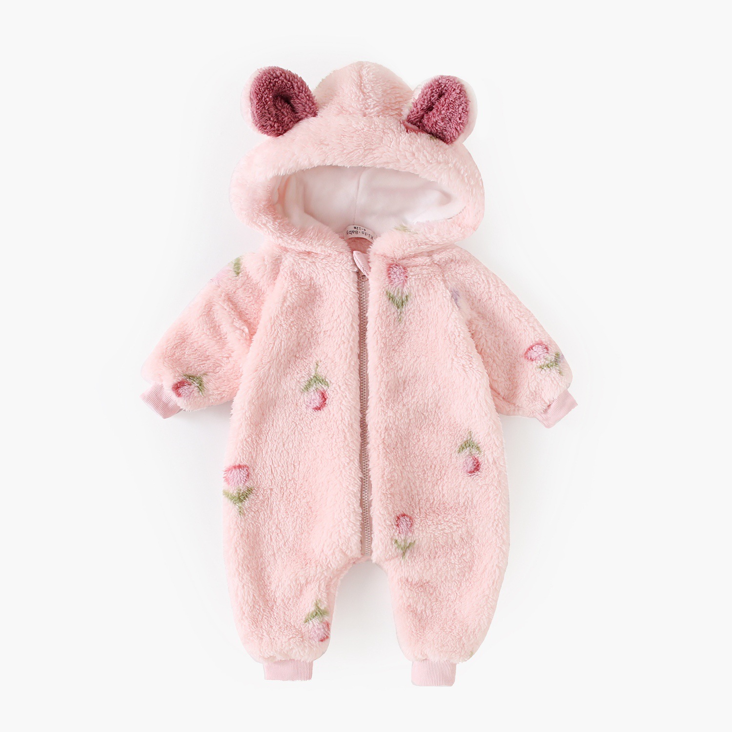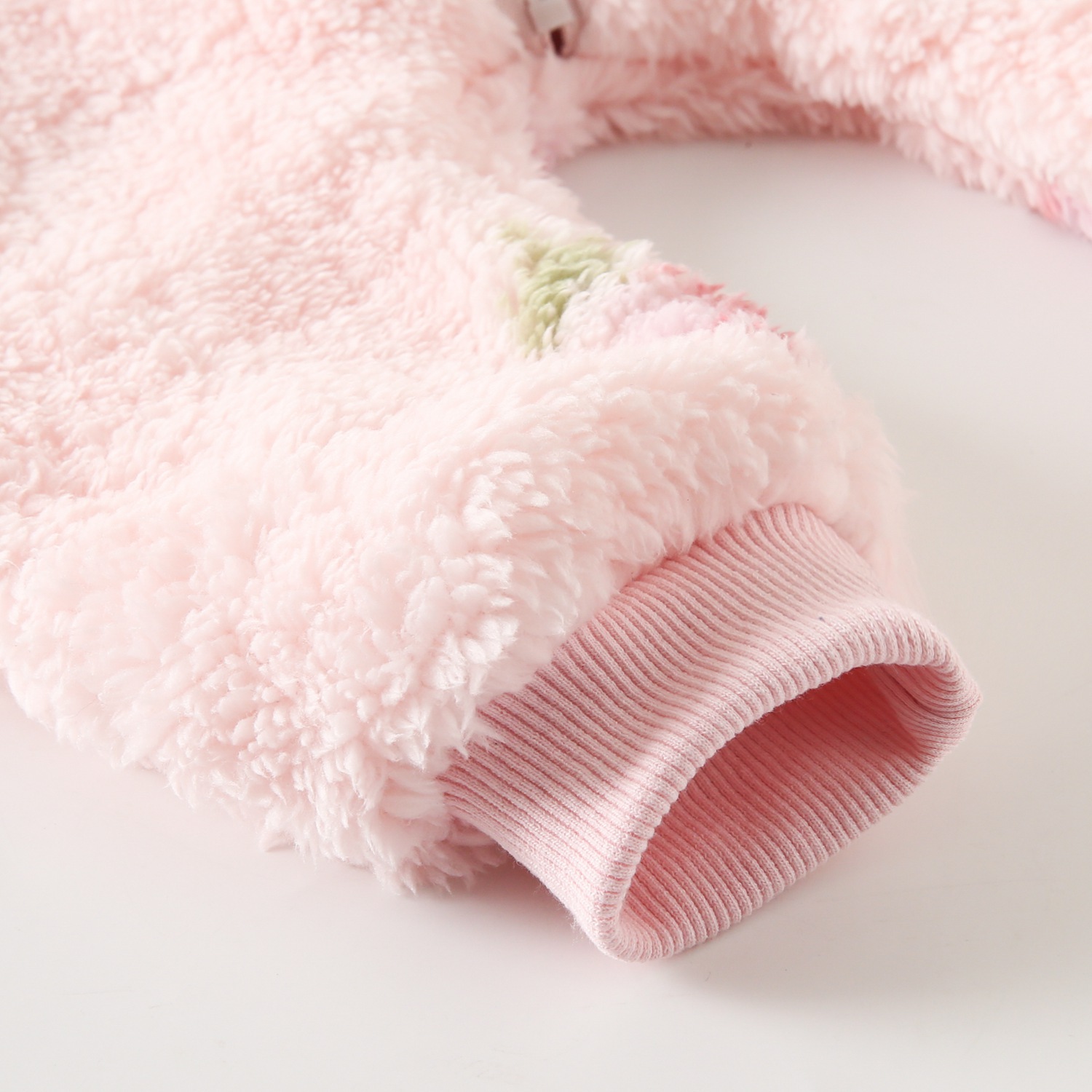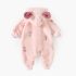 Salopetă călduroasă din pluș cu glugă cu urechiușe și închidere cu fermoar Sweet Soft Pink