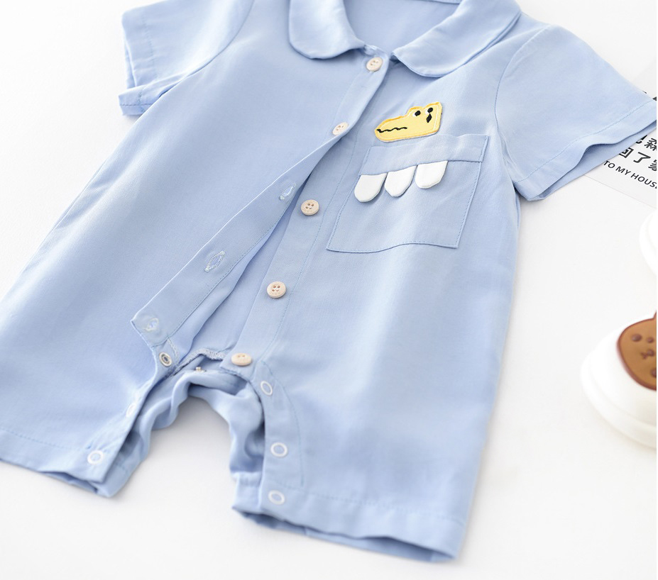 🐊 Se închide cu nasturi în față pe întreaga lungime și cu capse între picioare pentru schimbarea ușoară și schimbarea scutecelor.