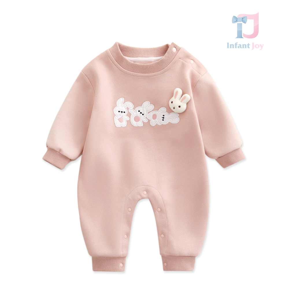 🐰 Design frumos cu aplicații de iepurași, element 3D și urechiușe pe spate care completează aspectul.