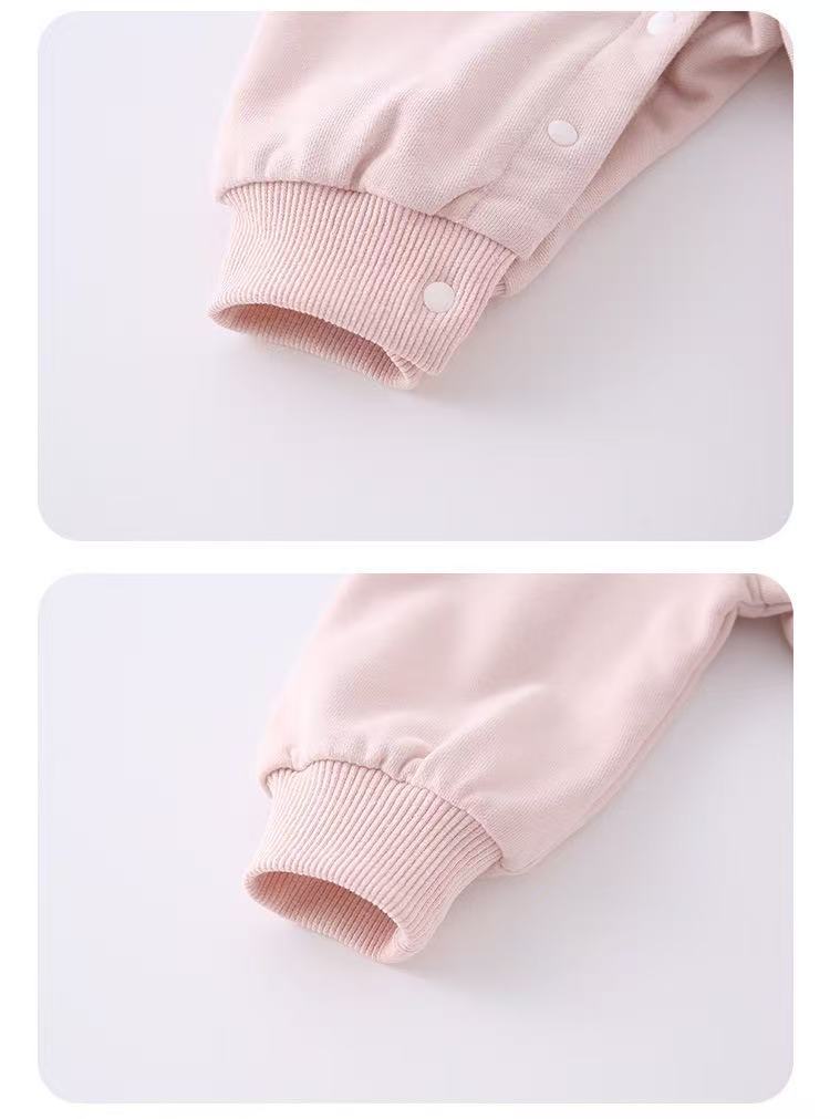 – Închidere practică cu capse între piciorușe – facilitează îmbrăcarea și schimbarea rapidă a scutecelor.