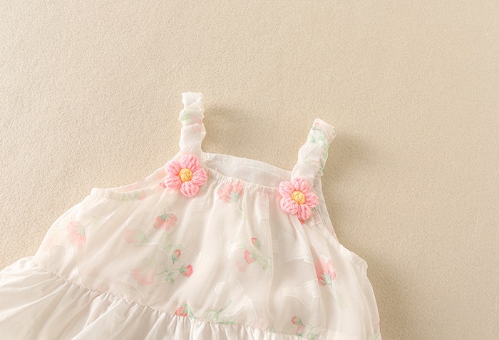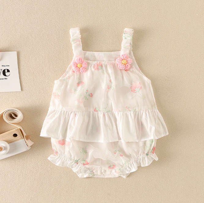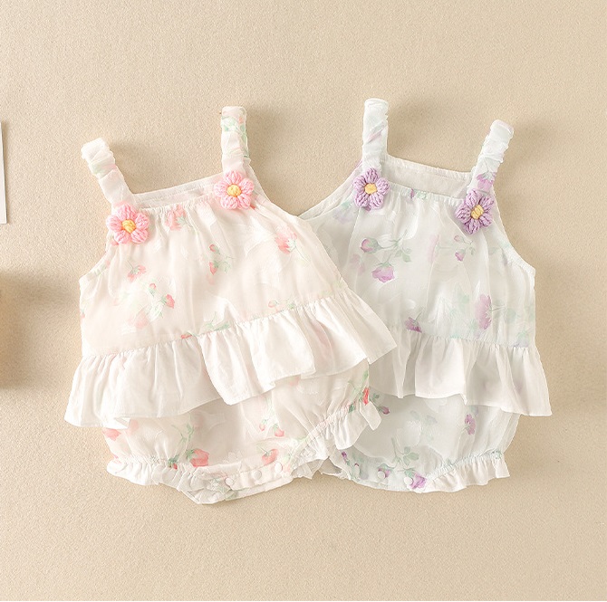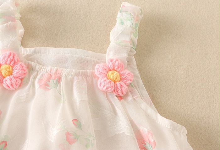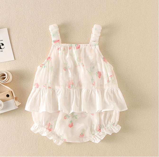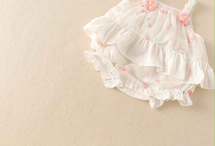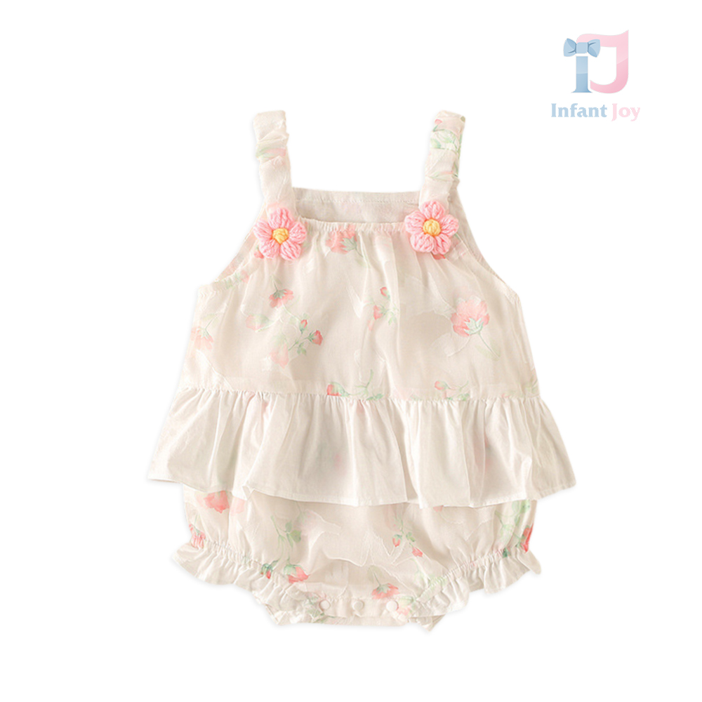 🌸 Un salopetă delicată cu imprimeu floral pentru fetițe.