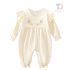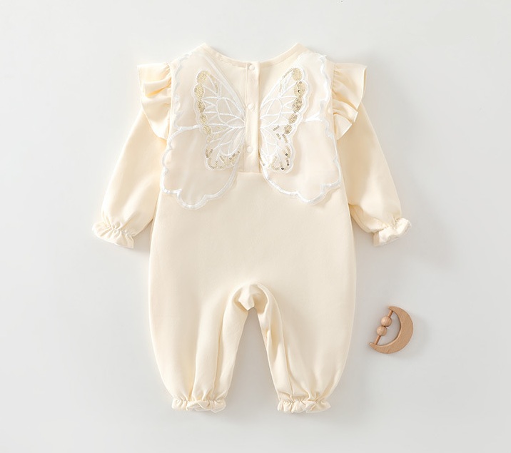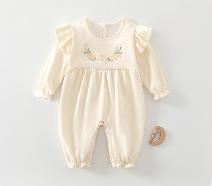 👶 Accent în partea din față – broderie florală în tonuri pastel și o fundiță delicată în centru.