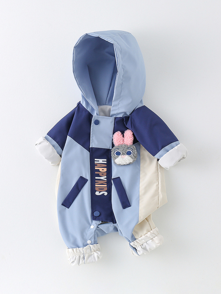 Salopetă de primăvară cu glugă, elemente 3D și închidere cu capse Happy Bunny
