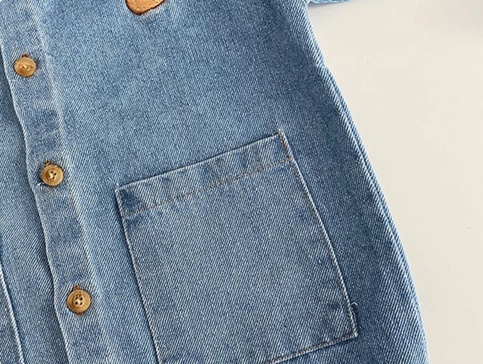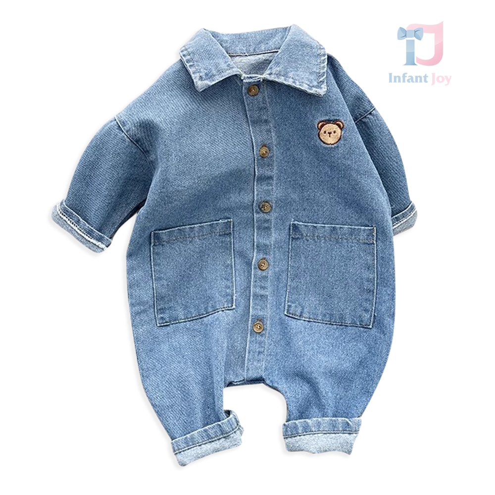 🐻 Salopetă din denim stilată și practică pentru fetiță și băiețel, care combină un design clasic cu o notă copilărească și confortabilă.