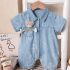 Salopetă din denim cu ursuleți imprimați și ursuleț plușat în buzunar – Sky Buddy