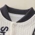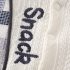 – Broderie contrastantă „Snack” în albastru închis – adaugă un accent jucăuș ținutei.