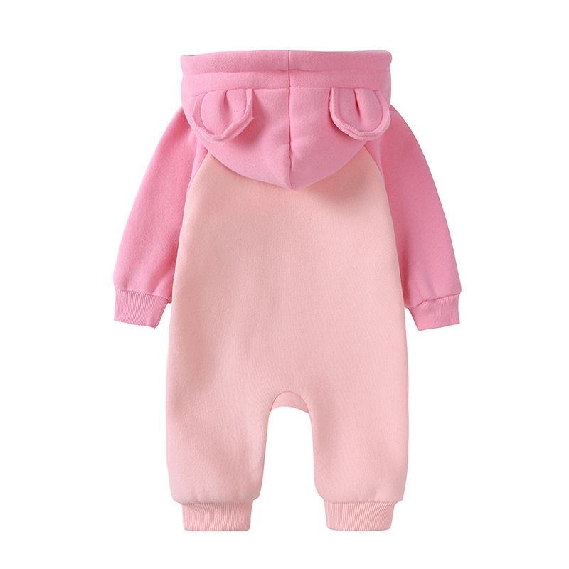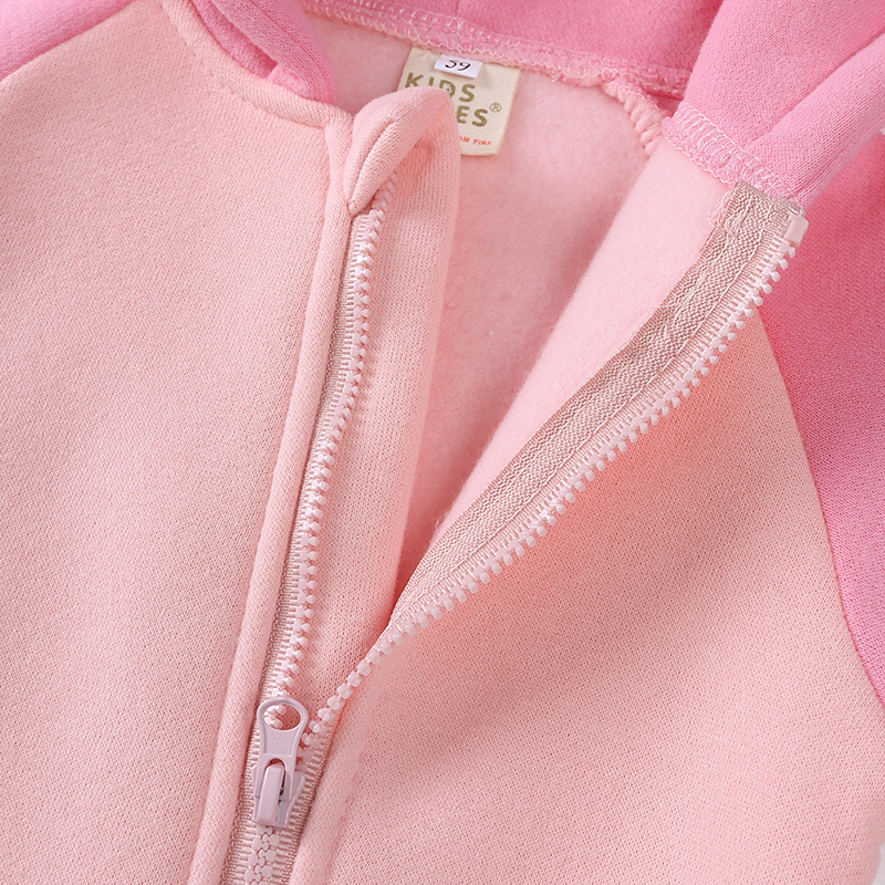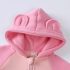 Salopetă matlasată cu glugă cu urechiușe și închidere asimetrică Cuddle Cub Pink