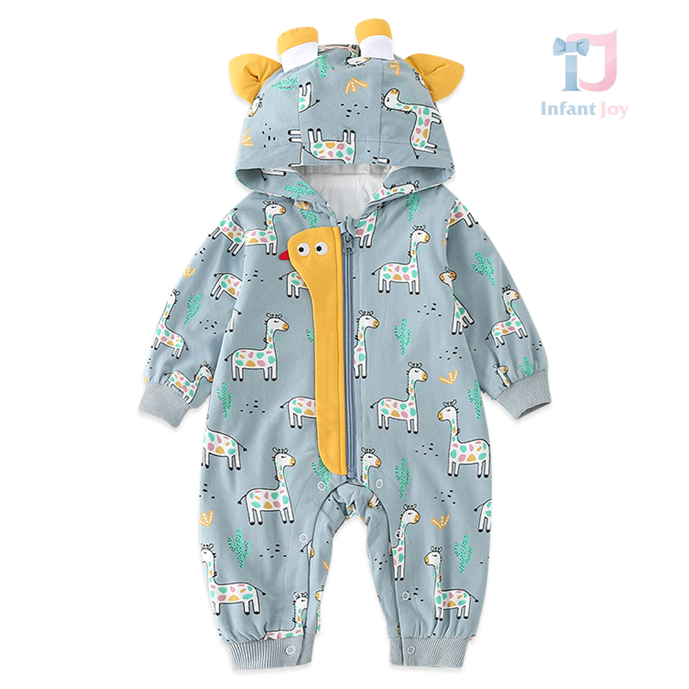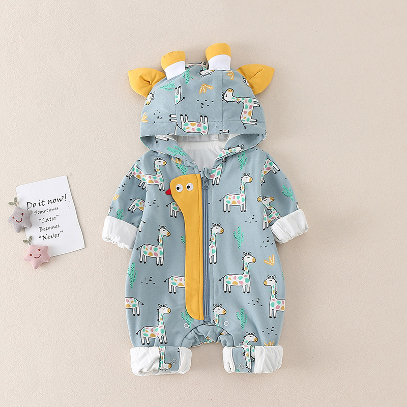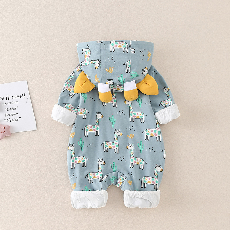 Salopetă cu glugă și elemente 3D Mini Giraffe Blue