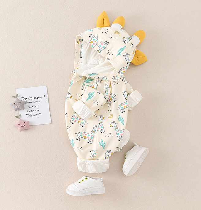 Salopetă cu glugă și elemente adăugate Mini Giraffe