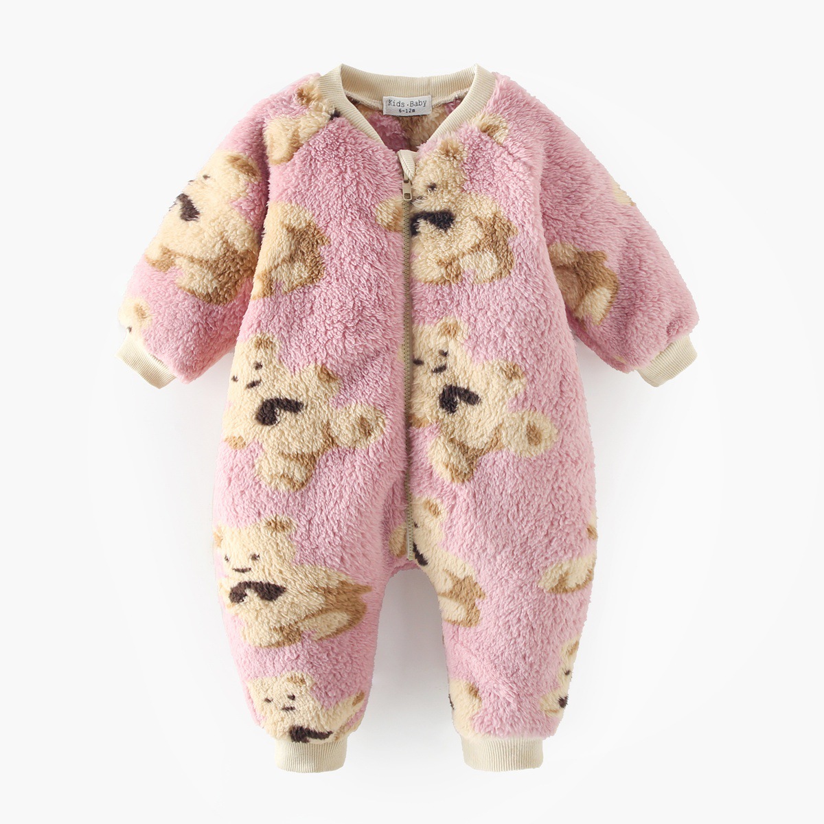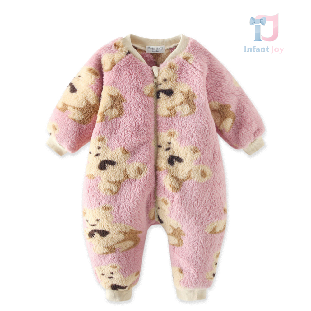 • Salopetă de pluș cu fermoar Pink Teddy