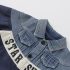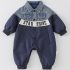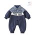 👶 Realizată dintr-o combinație de material matlasat rezistent în culoare bleumarin și elemente din denim, care creează un contrast interesant.