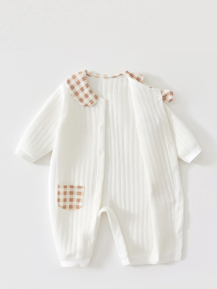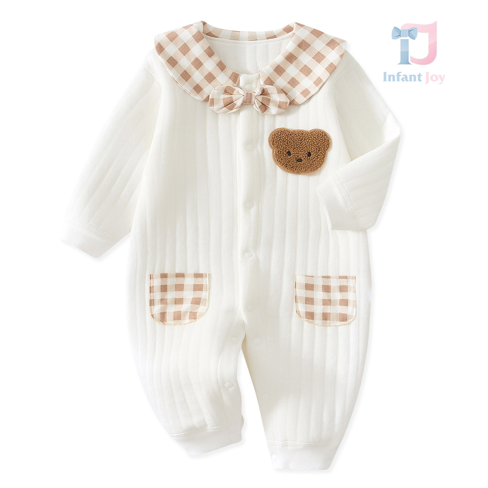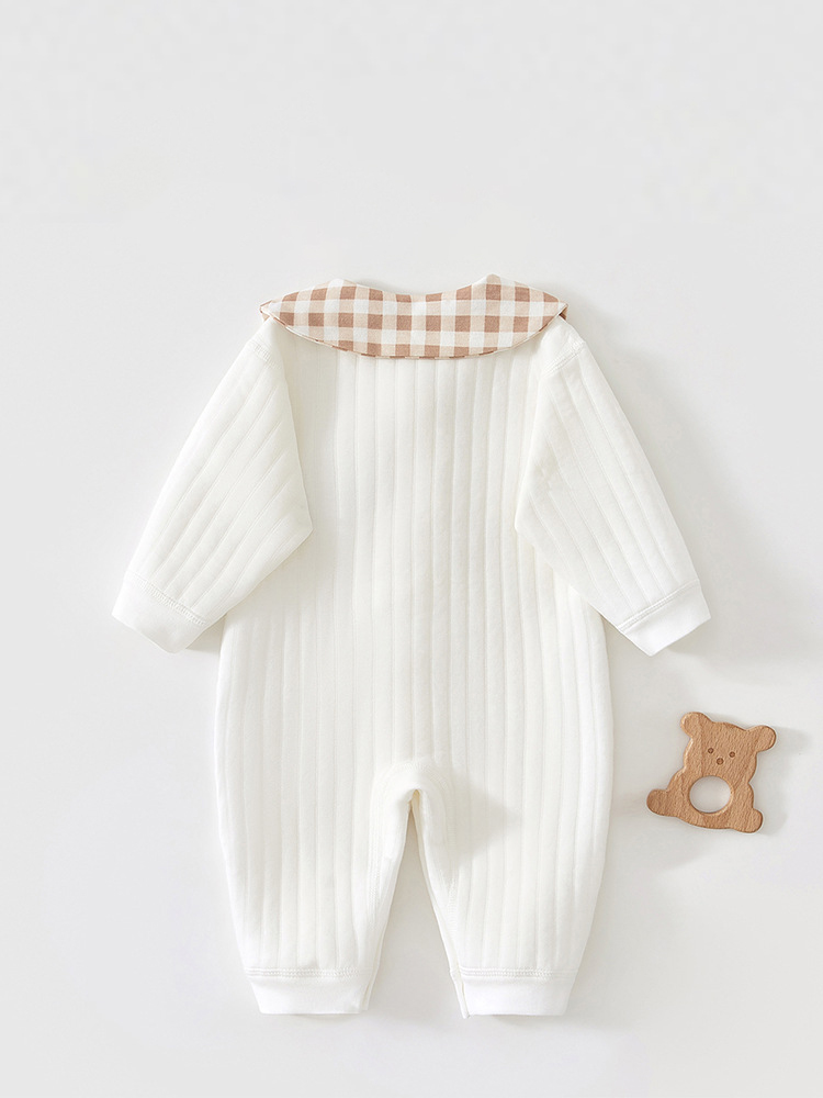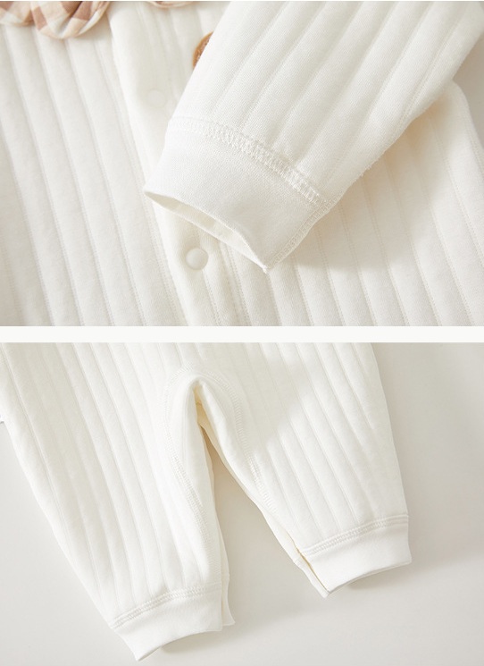 🧸Salopetă cu mânecă lungă, confecționată din bumbac moale și respirabil, cu textură fină verticală, delicată cu pielea sensibilă a bebelușului.